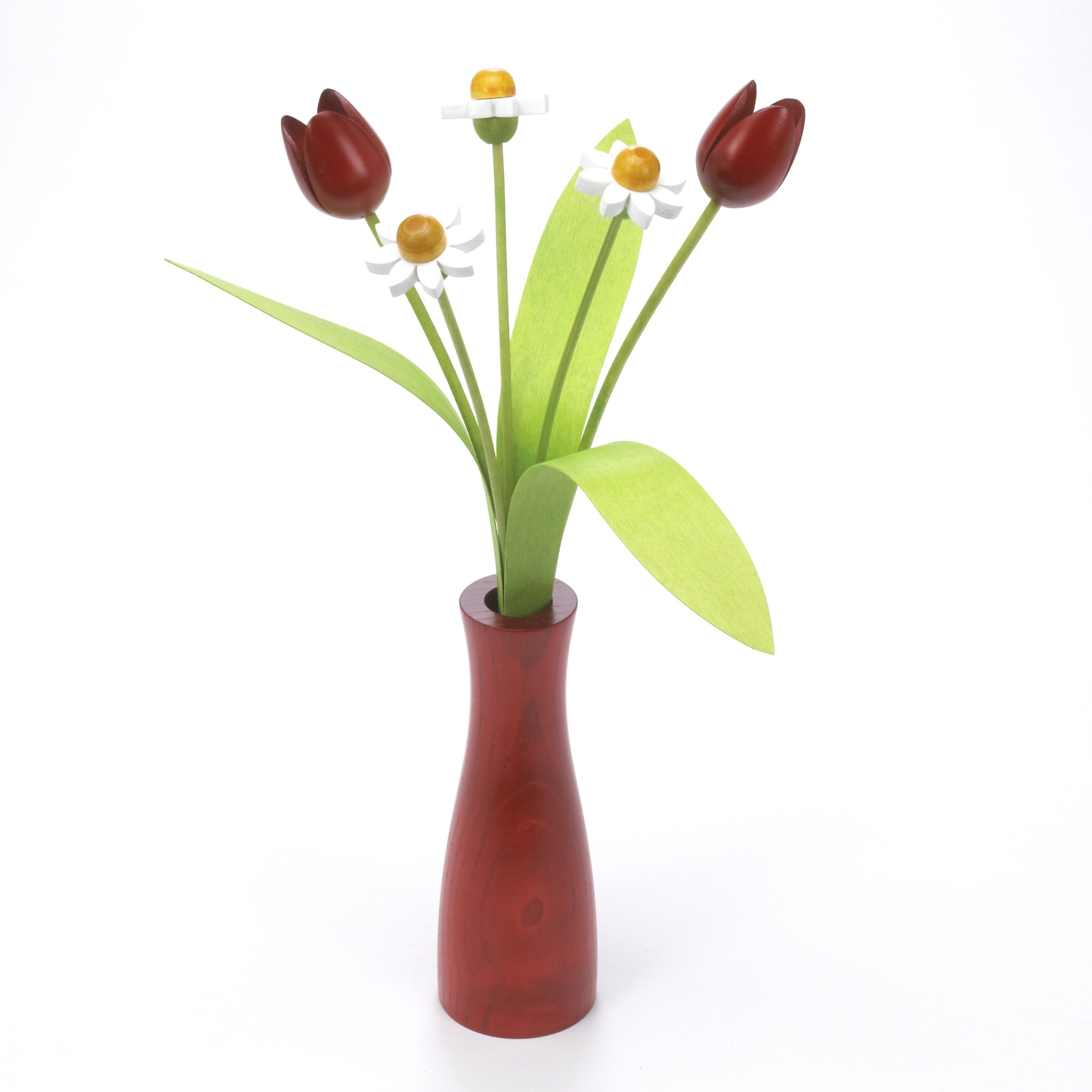 5 flower red tulip and white daisy with matching red ‘cool’ vase
