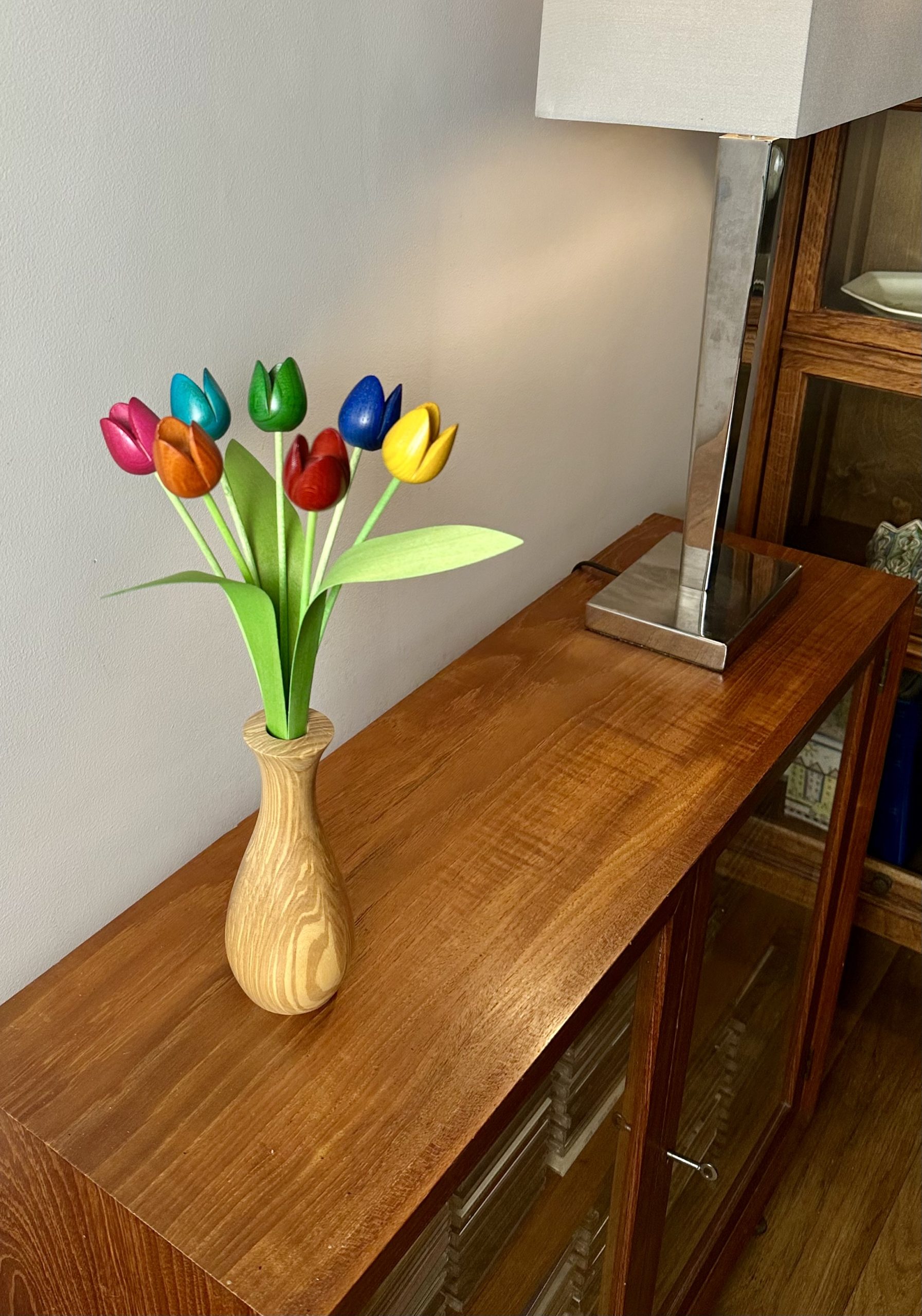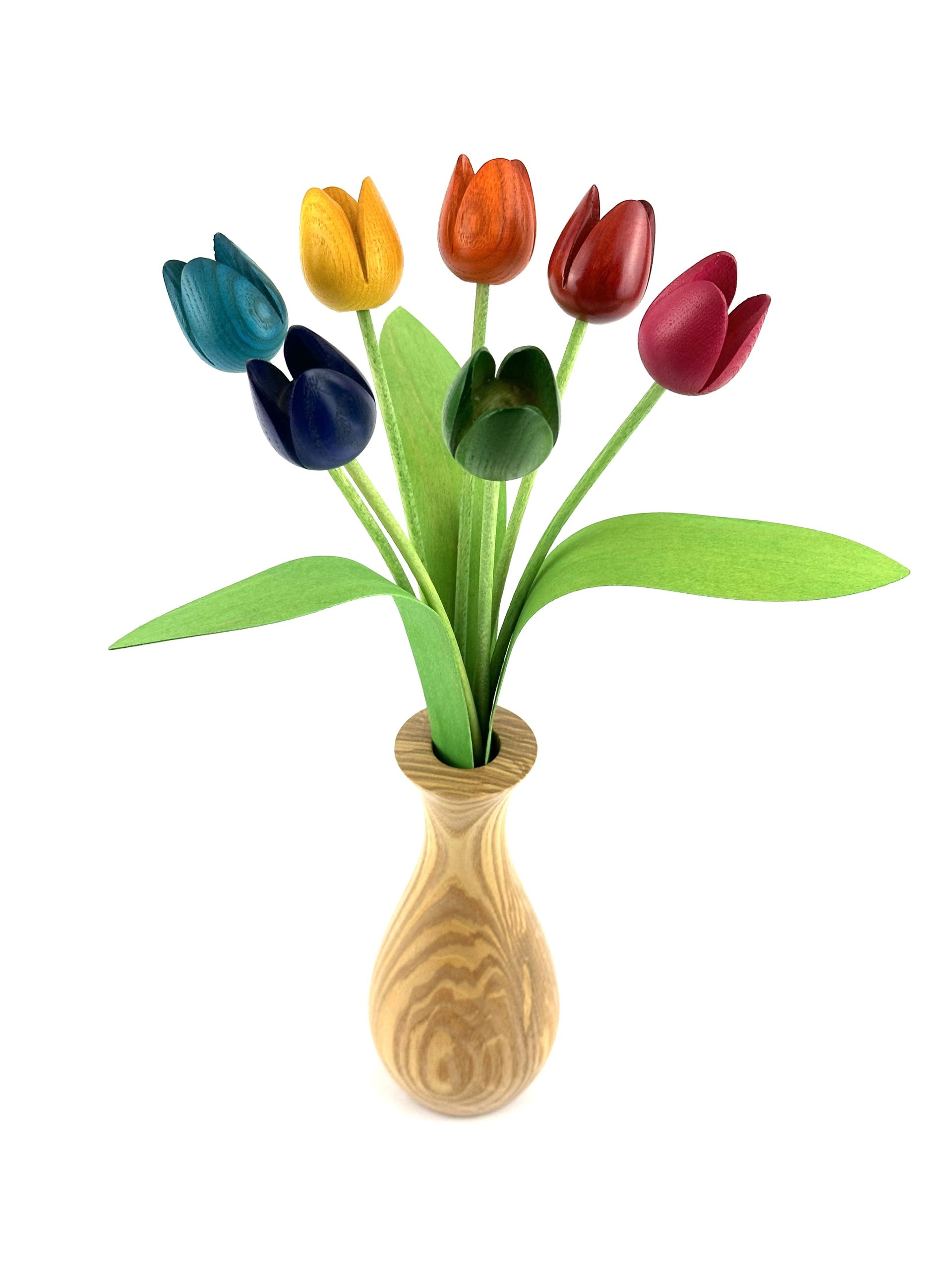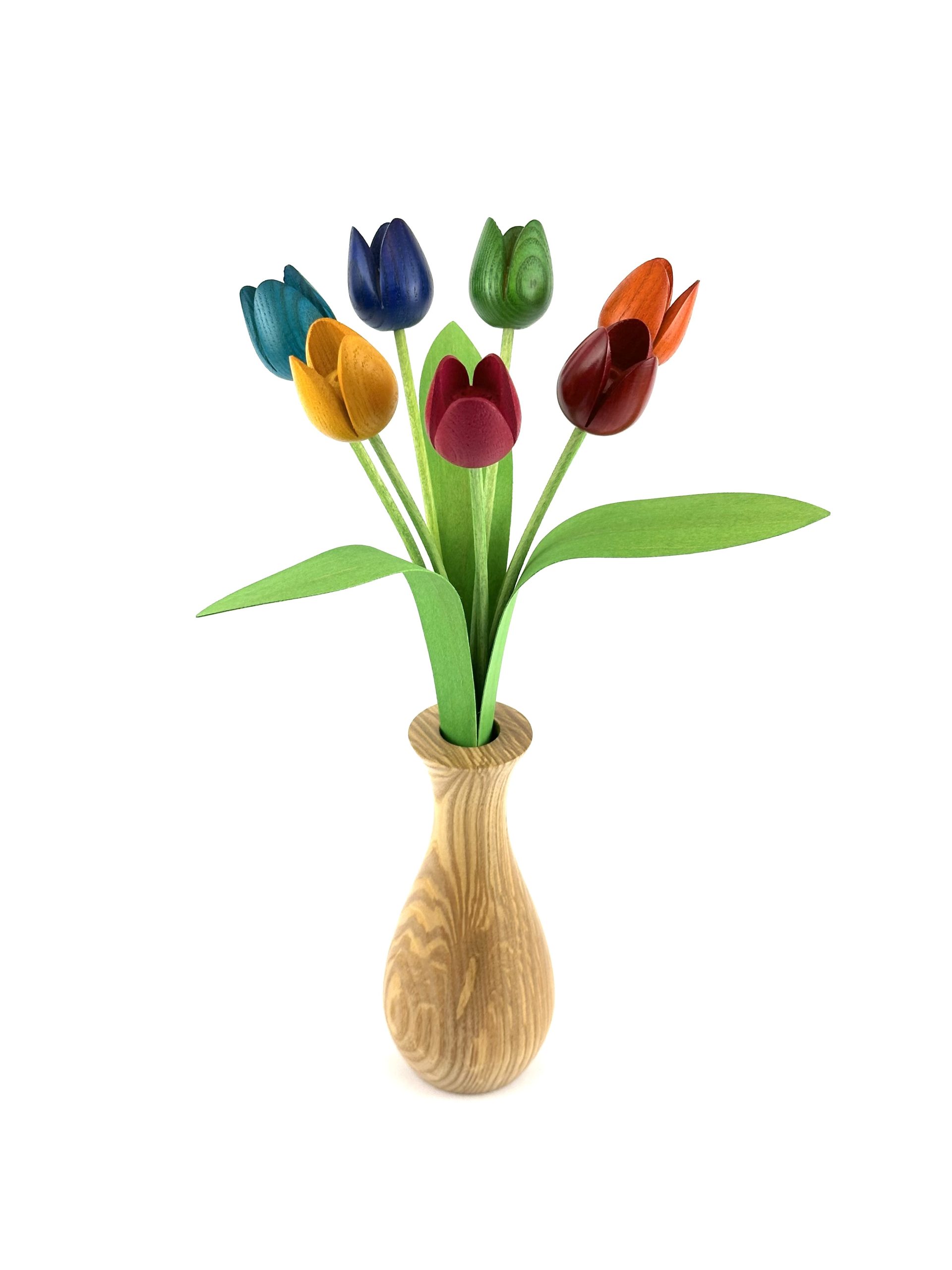 7 mixed colour stained and lacquered homegrown hardwood classic tulips