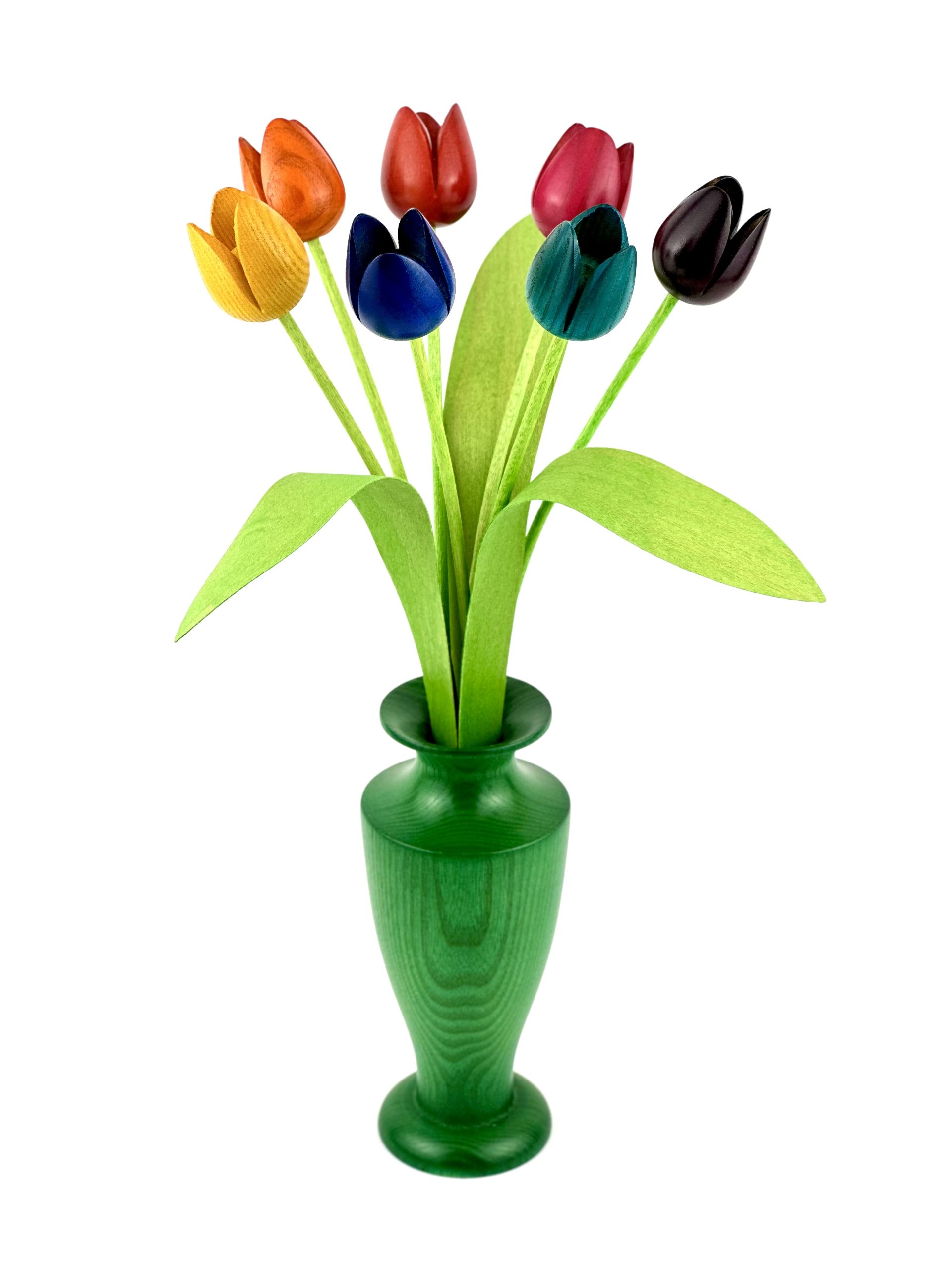 7 mixed colour stained and lacquered homegrown hardwood classic tulips