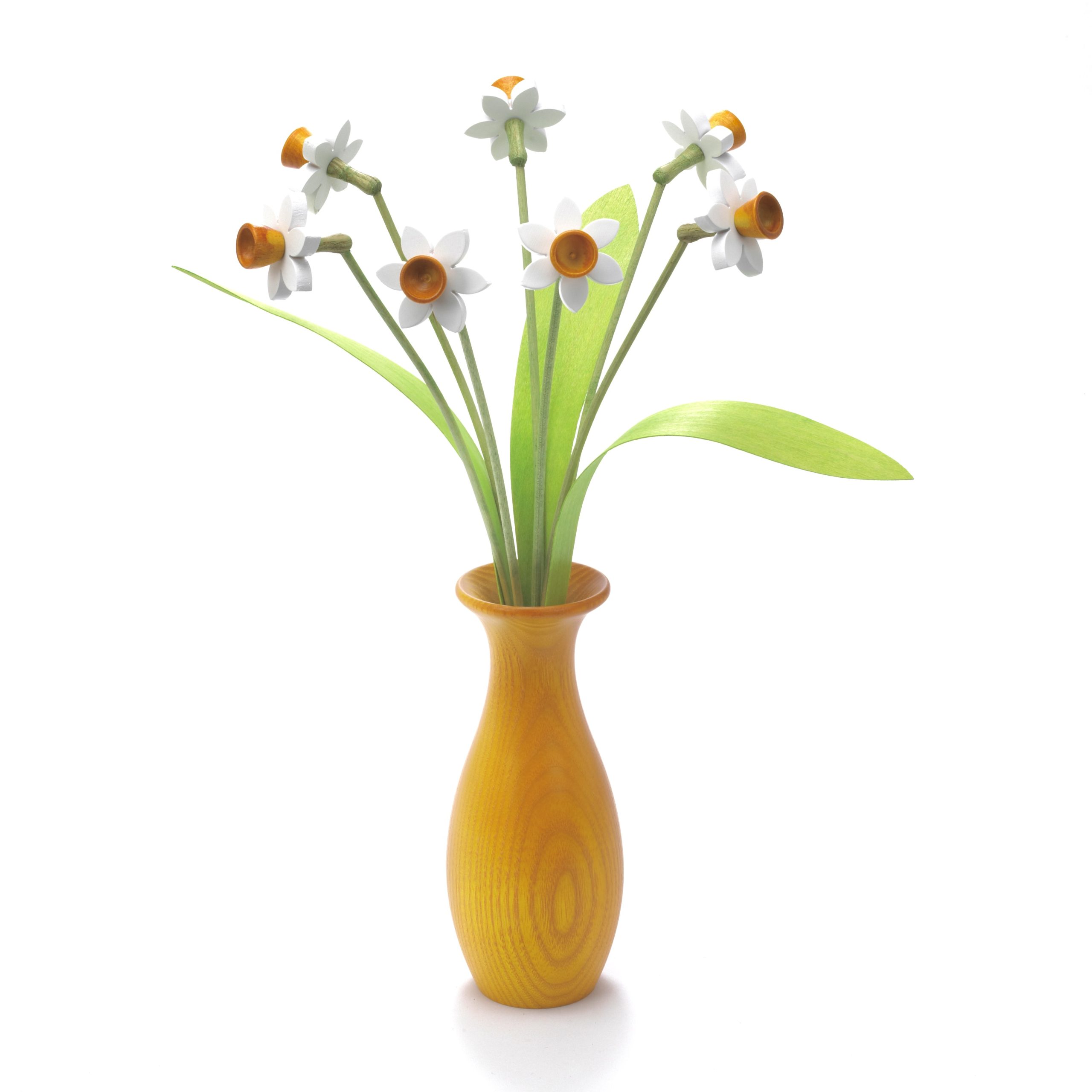 7 white daffodils with yellow vase set