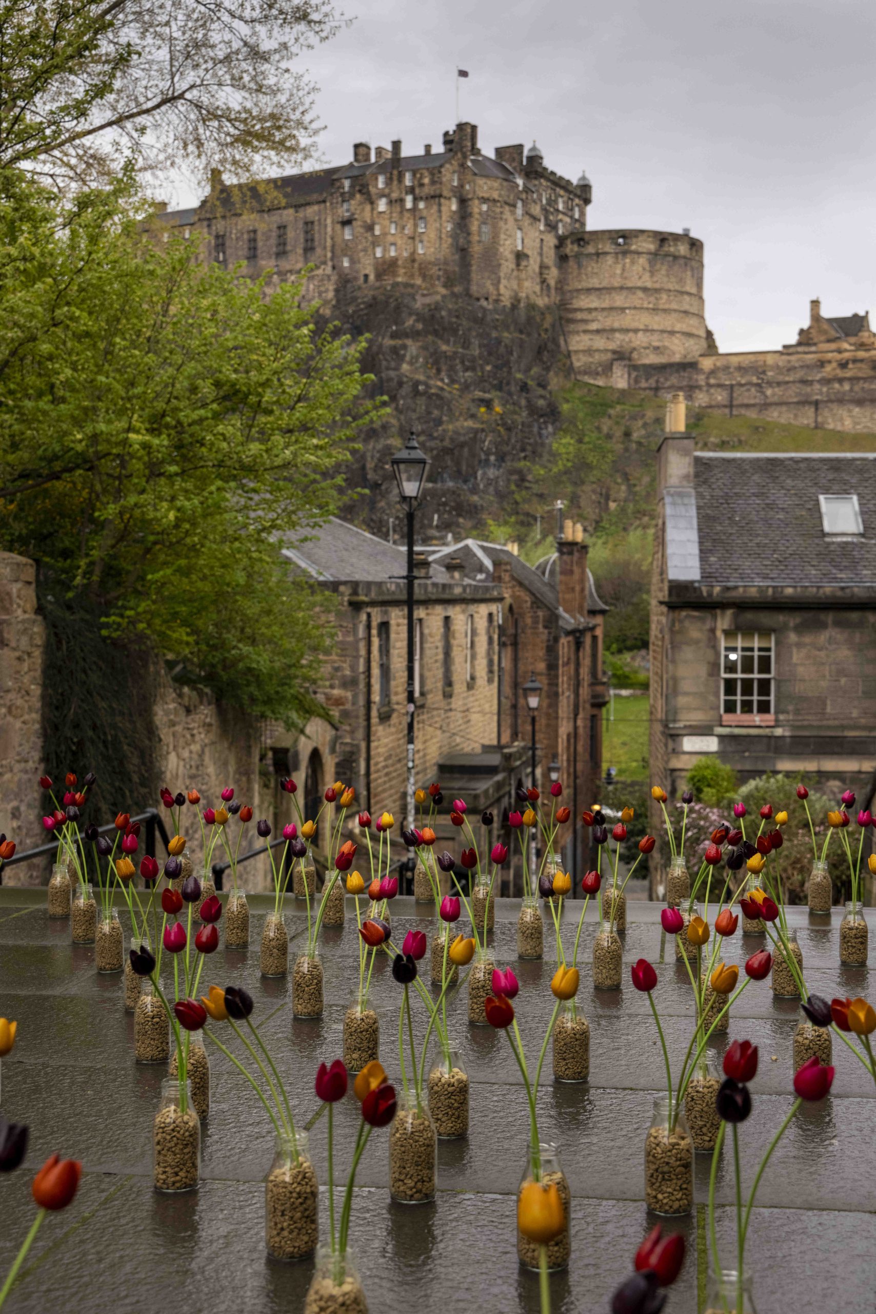 These displays in London, Edinburgh and Cardiff used 4500 tulips