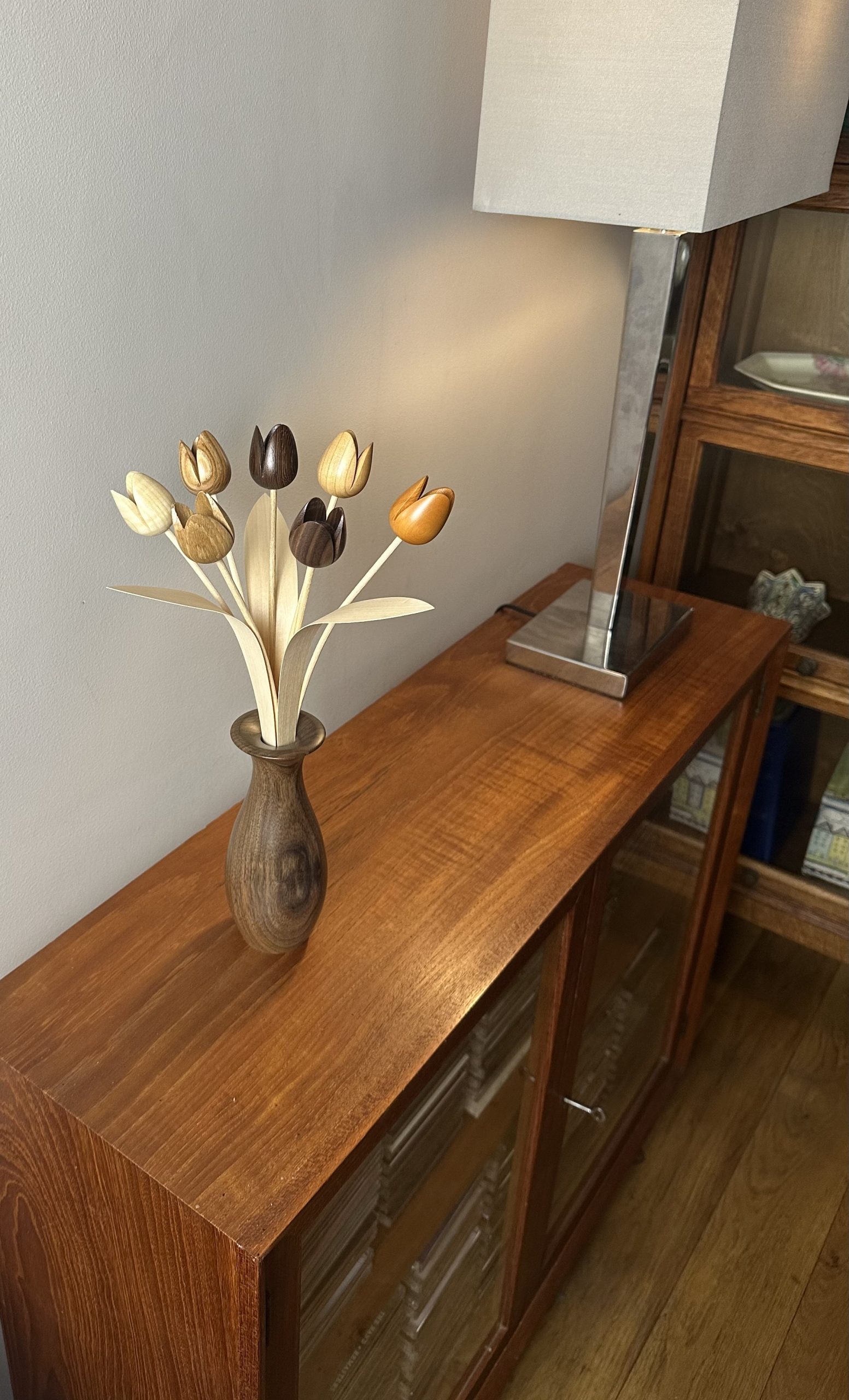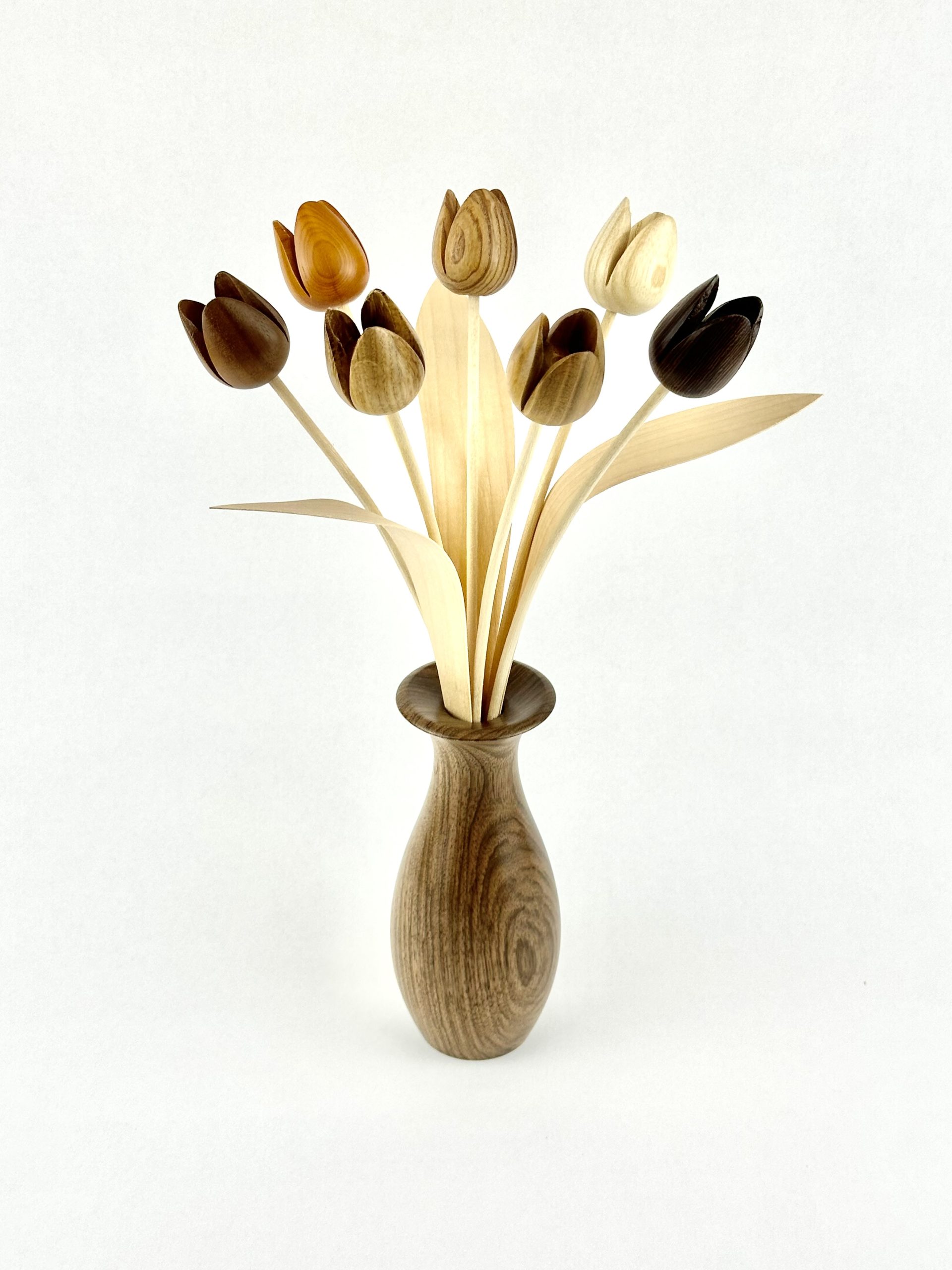 Mixed natural wood tulips with walnut ‘classic’ vase