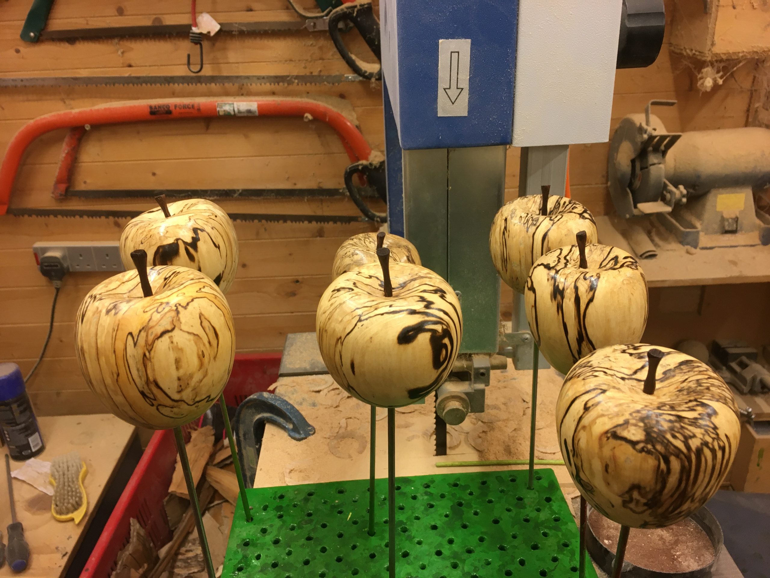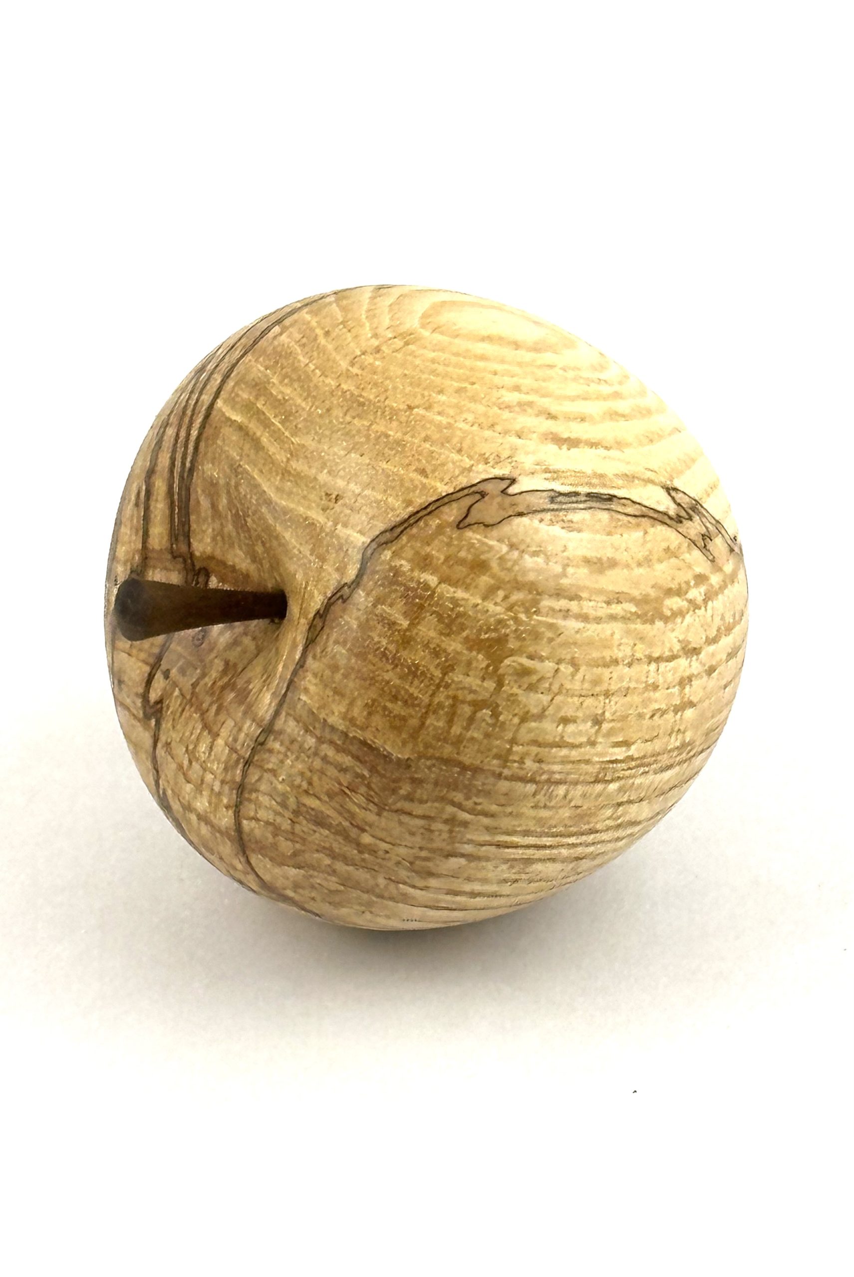 Stunning spalted beech apple turned from home grown spalted beech with turned walnut stalk